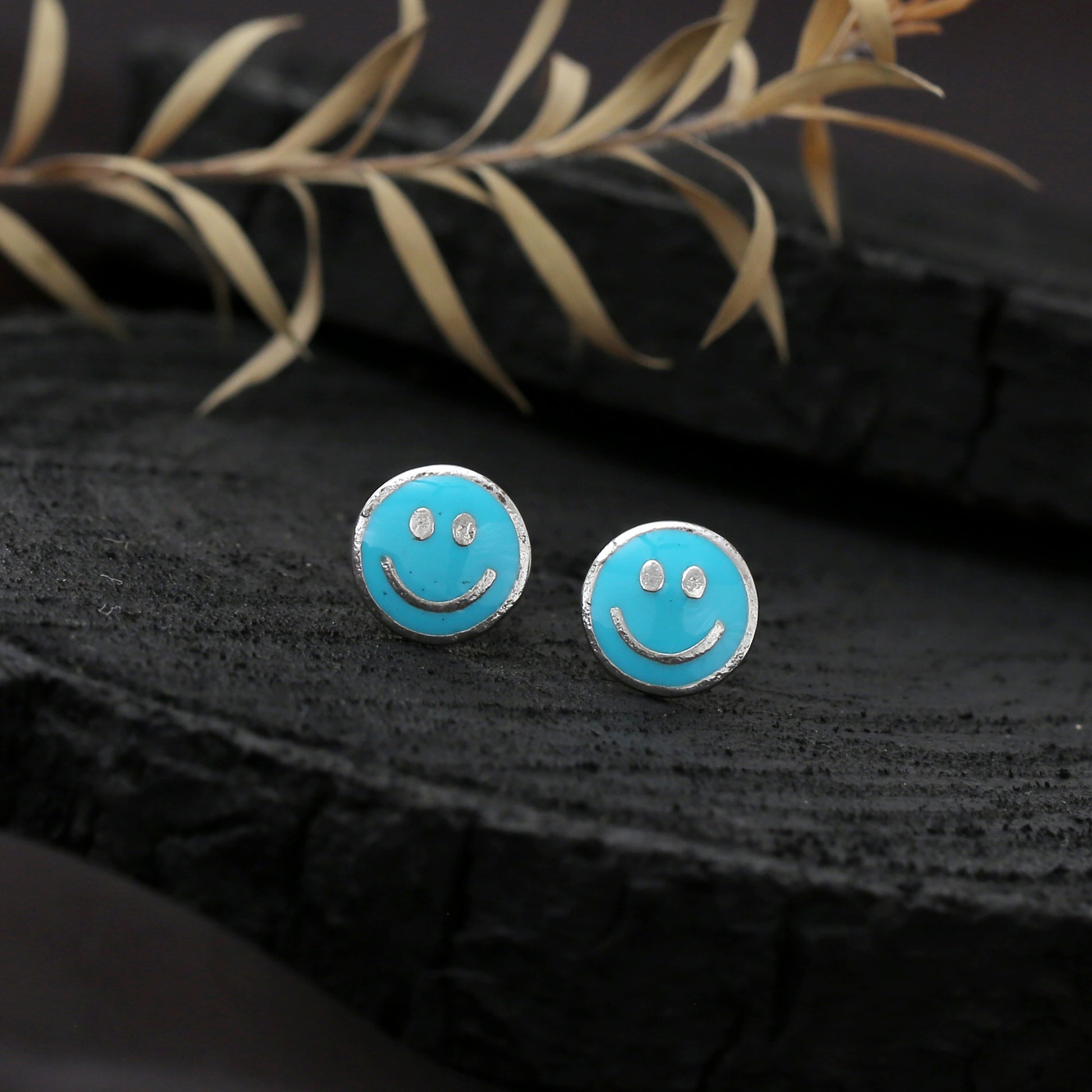 Add a pop of playful charm to your day with these adorable smiley face stud earrings. Each earring is crafted from 925 Sterling Silver and filled with a vibrant, light blue enamel, finished with a cheerful smiley design.